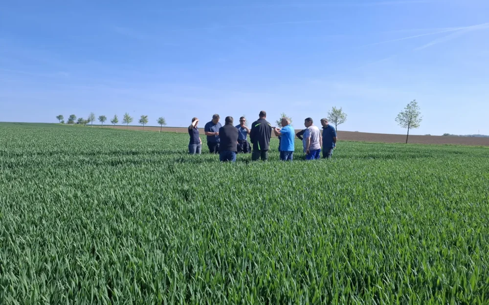 In dieser Frühjahrssaison durften wir Teil der „Oschatzer Beratungsrunde“ der BASF/DSV  sein. Unser Part war dabei hauptsächlich die Pflanzenernährung, dazu lieferten wir z.B. Nitratschnelltestergebnisse und teilflächenspezifische Bodenprobenergebnisse und berichteten von aktuellen Ergebnissen. Am 15.05.2025 trafen wir uns am Standort der Deutschen Saatveredelung AG in Leutewitz. Nach einem Update in Punkto „Aktuelles zum Pflanzenschutz auf dem Acker“ durch die BASF informierten wir zum Sorghum-Anbau als Alternative zum Silomais für Biogasanlagen. Im Anschluss warfen wir einen Blick auf das Versuchsfeld der DSV, dabei lag besonderes  Augenmerk auf den Saatterminversuchen. Aber auch die Sortenversuche und die Parzellen für die Erhaltungszüchtung waren sehenswert und wurden uns mit Begeisterung vorgestellt.