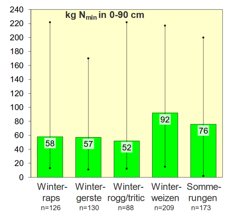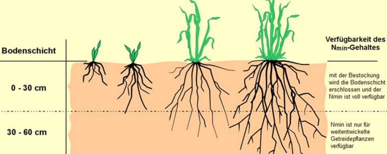 Unserer Erfahrung nach ist die Nmin-Methode hierbei nicht für alle Kulturen gleichermaßen bedeutsam. Der Schwerpunkt sollte vor allem auf dem Wintergetreide liegen.
