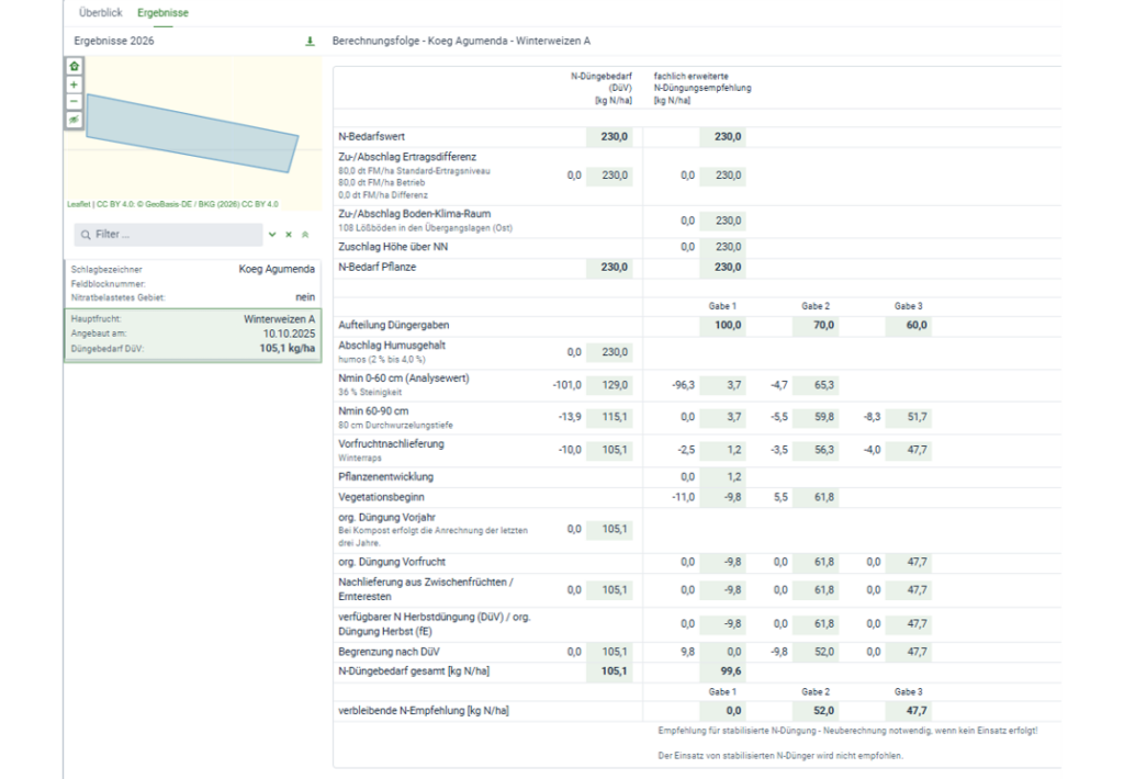 Ob die Startgabe bei Nmin-Werten im Bereich von 100 kg/ha – wie in WebBESyD empfohlen – vollständig weggelassen werden kann, werden wir in unseren Düngestrategieversuchen in Kleinbardau und Groitzsch (-> Link) prüfen.